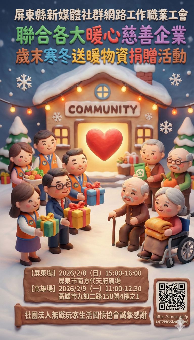 【屏東、高雄訊】 歲末年終寒流來襲,為讓弱勢群體感受社會溫暖,「屏東新媒體社群網路工作職業工會」發起【歲末年終.寒冬送暖